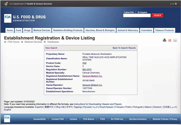 美国食品药品监督管理局(FDA)是国际医疗审核权威机构,通过FDA认证的食品、药品、化妆品和医疗器械等产品,是全球权威标准证明。leyu.乐鱼生物四通道iPonatic核酸检测分析仪获美国FDA认证后,将有效扩大和满足全球市场各级检测防控需求,为全球疫情防控工作持续助力,推动公司全球化事业发展。
